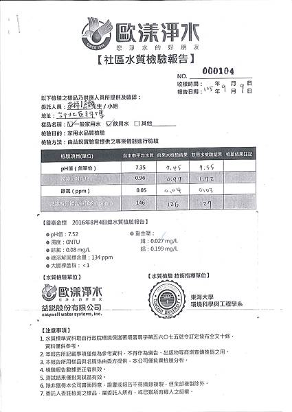 他們歡迎社區住戶攜帶自家的自來水或飲用水,當場免費化驗,而且時間很快,大約10-30分鐘,馬上可以給每位送驗的住戶正式的化驗報告,更貼心的是這家工廠會一一的為住戶解釋妳們家的水質情況,讓住戶安心或加以改善。