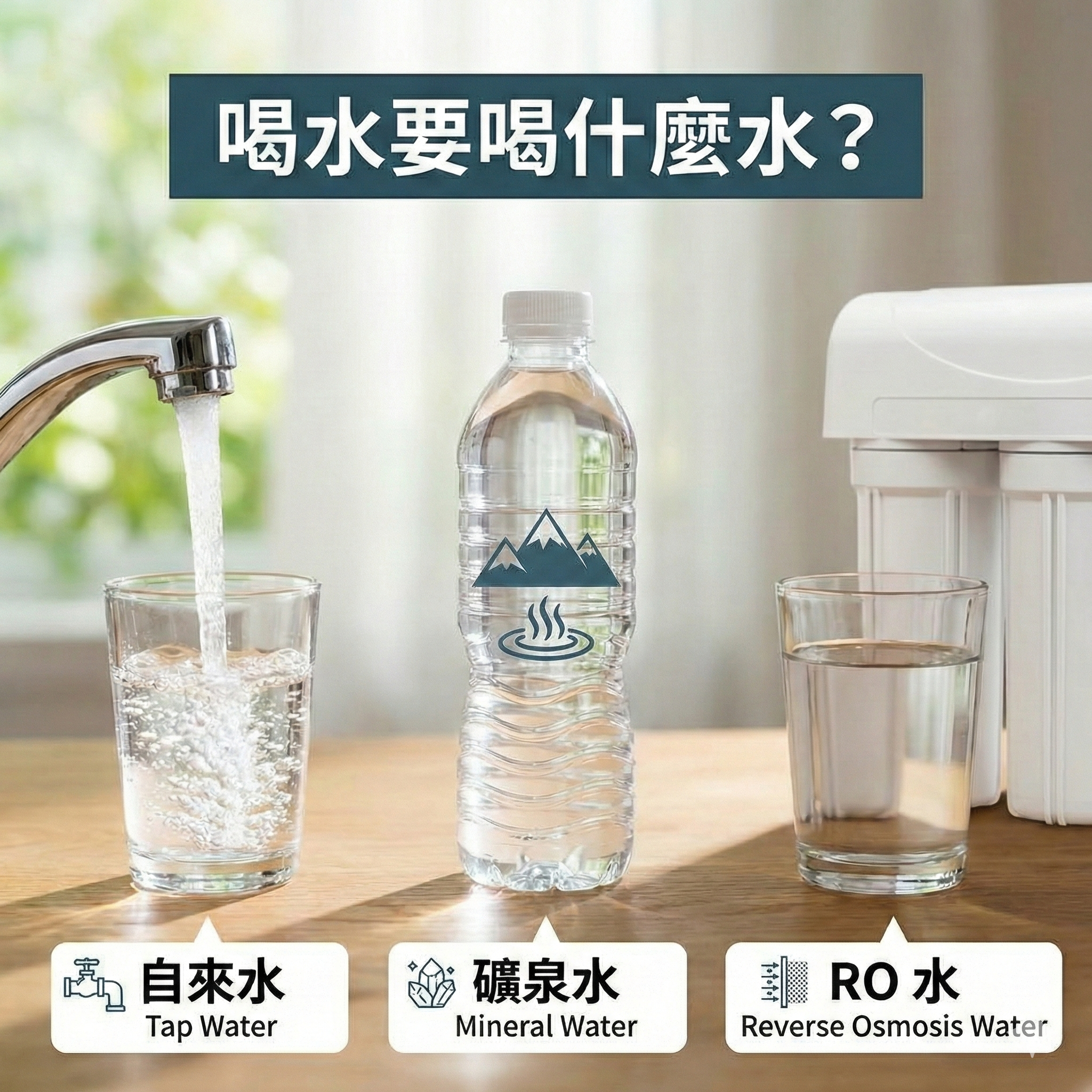 不論選擇哪種水,保持適量飲水才是健康的根本,飲用水的選擇應以「純淨安全」為基石,再輔以「飲食均衡」來補充礦物質,才是科學且健康的飲水策略。